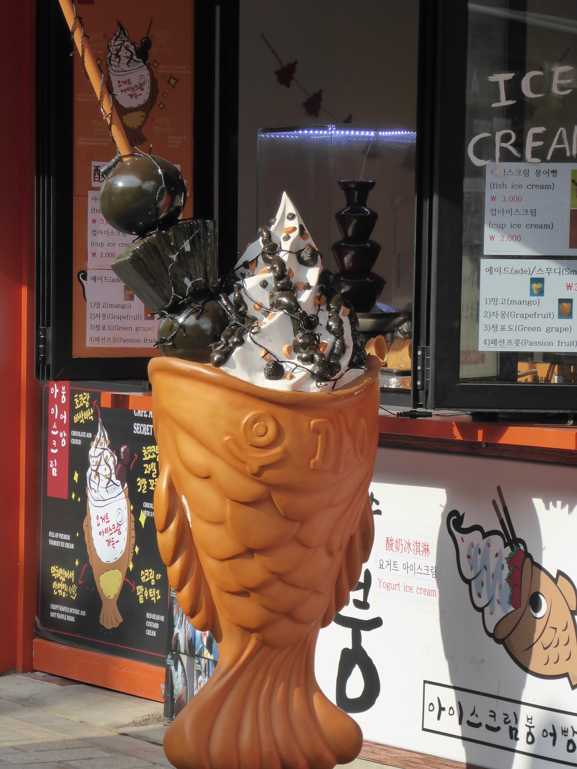 And my desert of some kind of chocolate pie, arrived looking like a very happy fish, proving that all South Korean depictions of animals are happy.