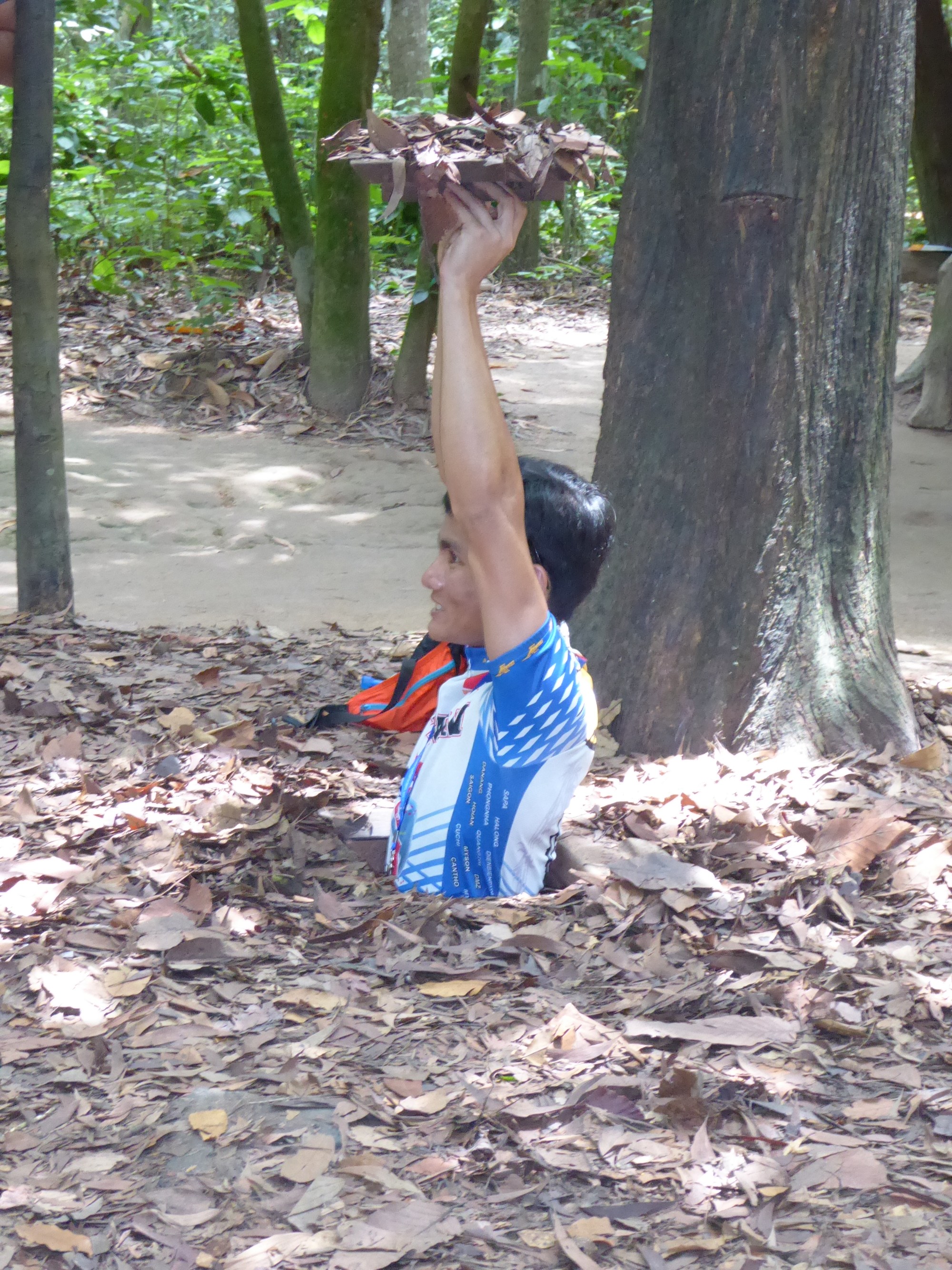 Then our tour guide disappeared. Basically he was demonstrating how quickly and effectively the Viet Cong could disappear through a tunnel entrance. I am pretty sure I couldn’t even fit in the tunnel entrance never mind disappear though it.