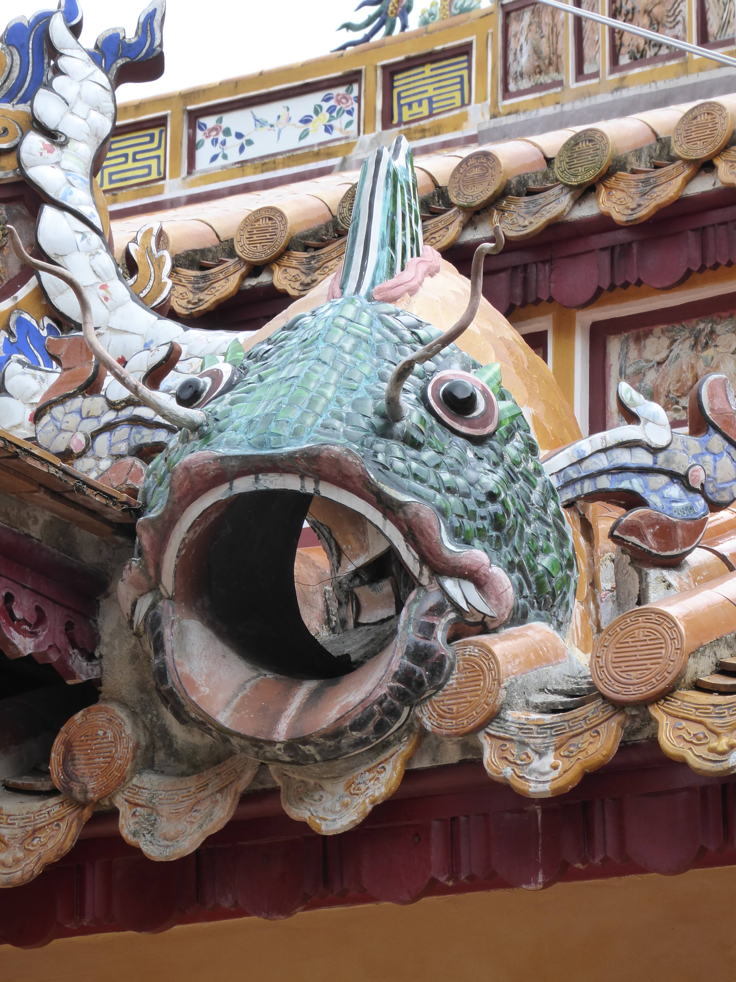 There was some very beautiful mosaic work on the roof of the temple including some amazing fish which would have been amazing to see during the earlier downpour with water jetting from their mouths.